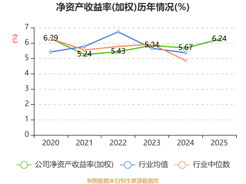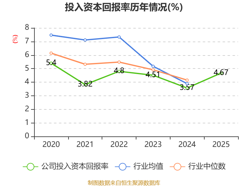 数据显示,2025年公司加权平均净资产收益率为6.24%,较上年同期上升0.57个百分点。公司2025年投入资本回报率为4.67%,较上年同期上升1.1个百分点。