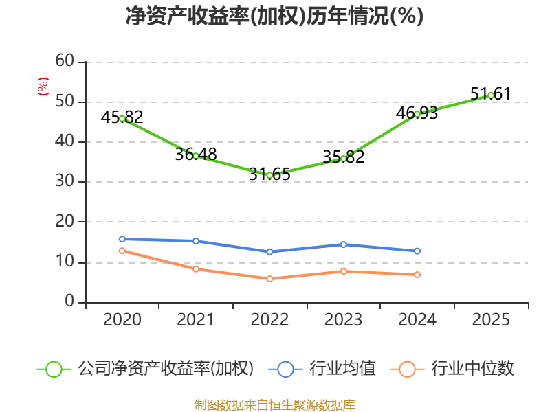 数据显示,2025年公司加权平均净资产收益率为51.61%,较上年同期上升4.68个百分点。公司2025年投入资本回报率为28.18%,较上年同期上升1.53个百分点。