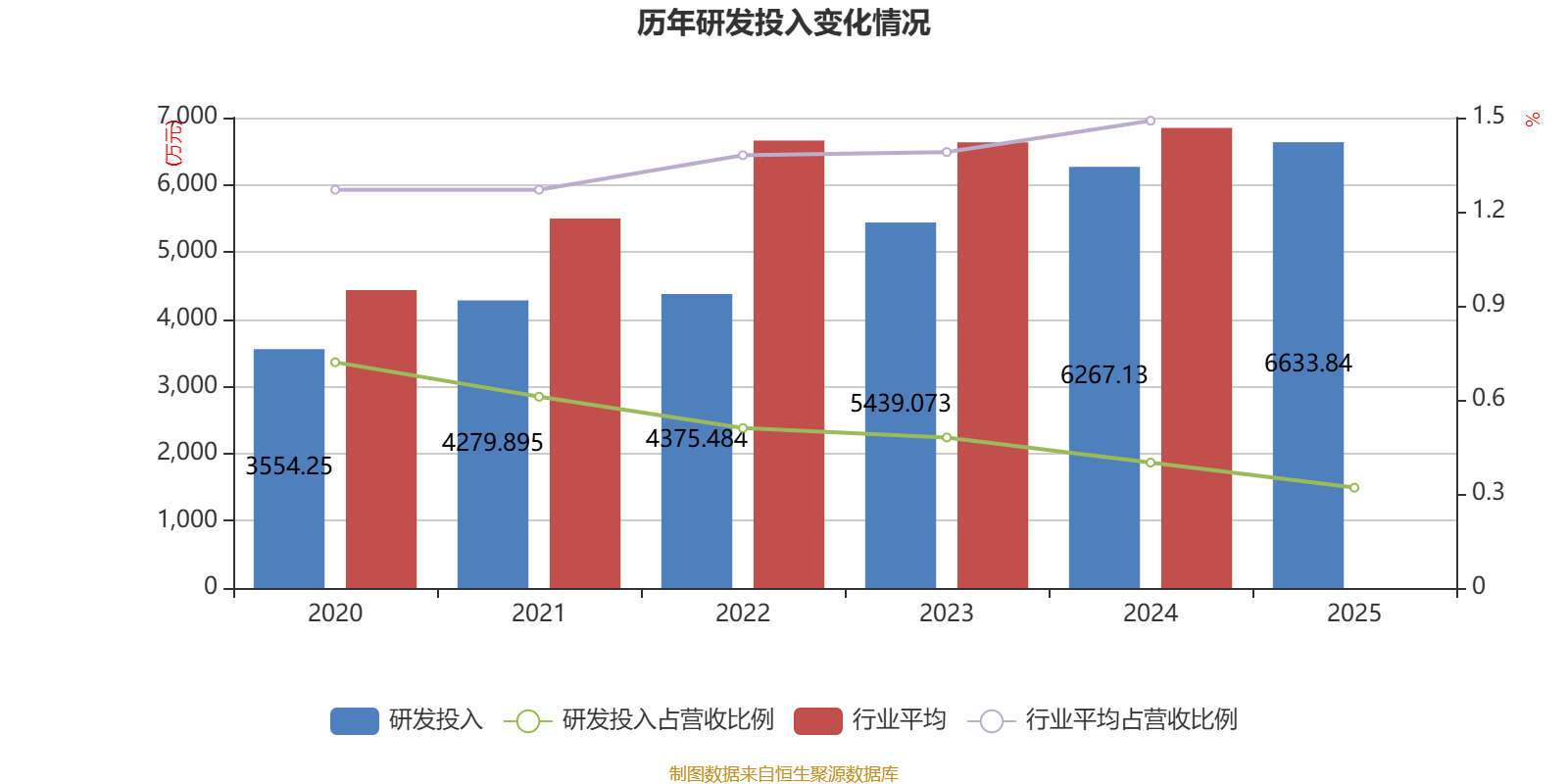2025年全年,公司研发投入金额为6633.84万元,同比增长5.85%;研发投入占营业收入比例为0.32%,相比上年同期下降0.08个百分点。此外,公司全年研发投入资本化率为0%。
