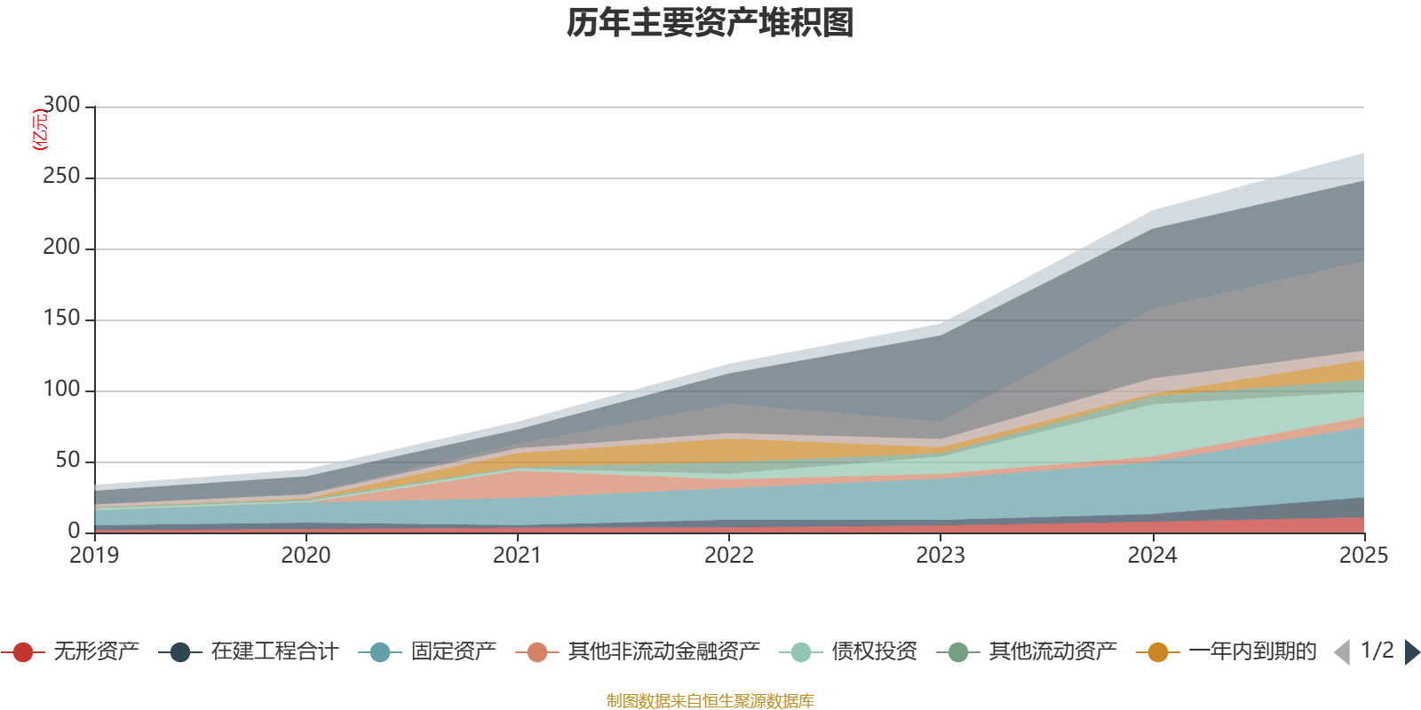 资产重大变化方面,截至2025年末,公司债权投资较上年末减少52.13%,占公司总资产比重下降9.61个百分点;一年内到期的非流动资产较上年末增加651.32%,占公司总资产比重上升4.35个百分点;货币资金较上年末增加0.49%,占公司总资产比重下降3.67个百分点;在建工程合计较上年末增加155.14%,占公司总资产比重上升2.85个百分点。