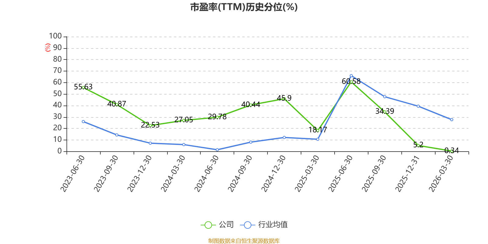 市盈率、市净率为负时,不显示当期分位数,会导致折线图中断。
