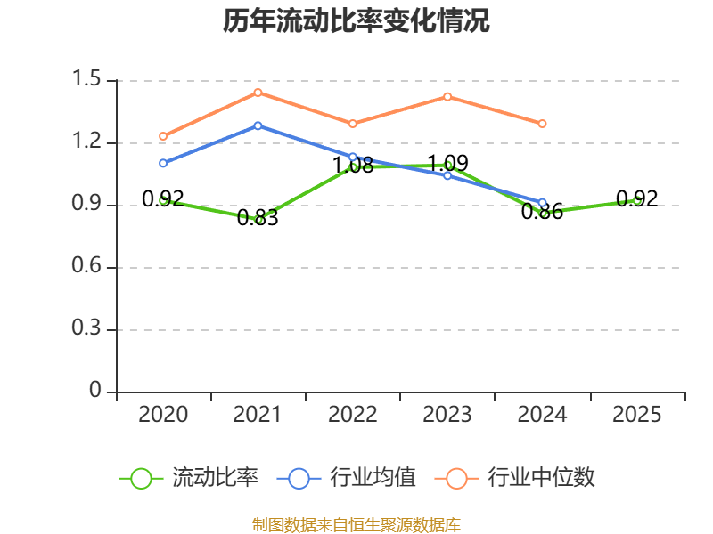2025年,公司流动比率为0.92,速动比率为0.88。