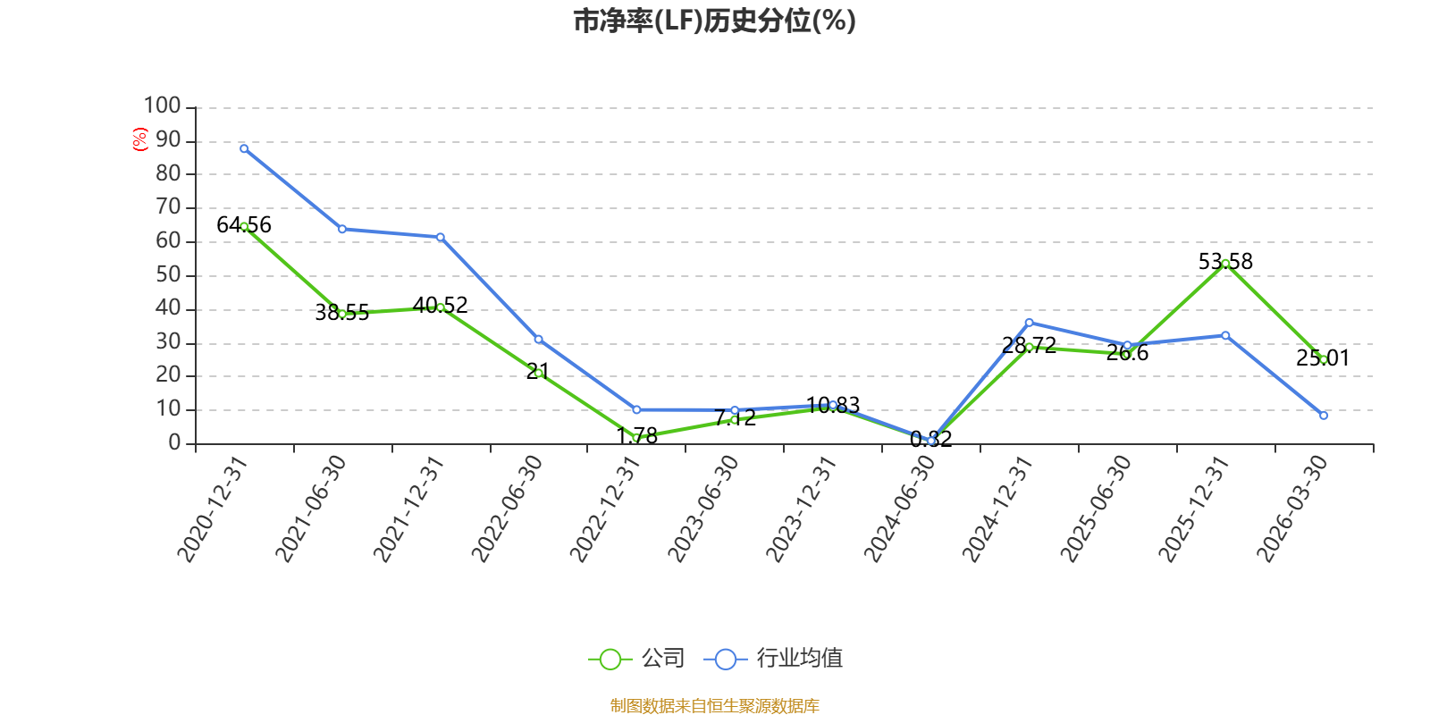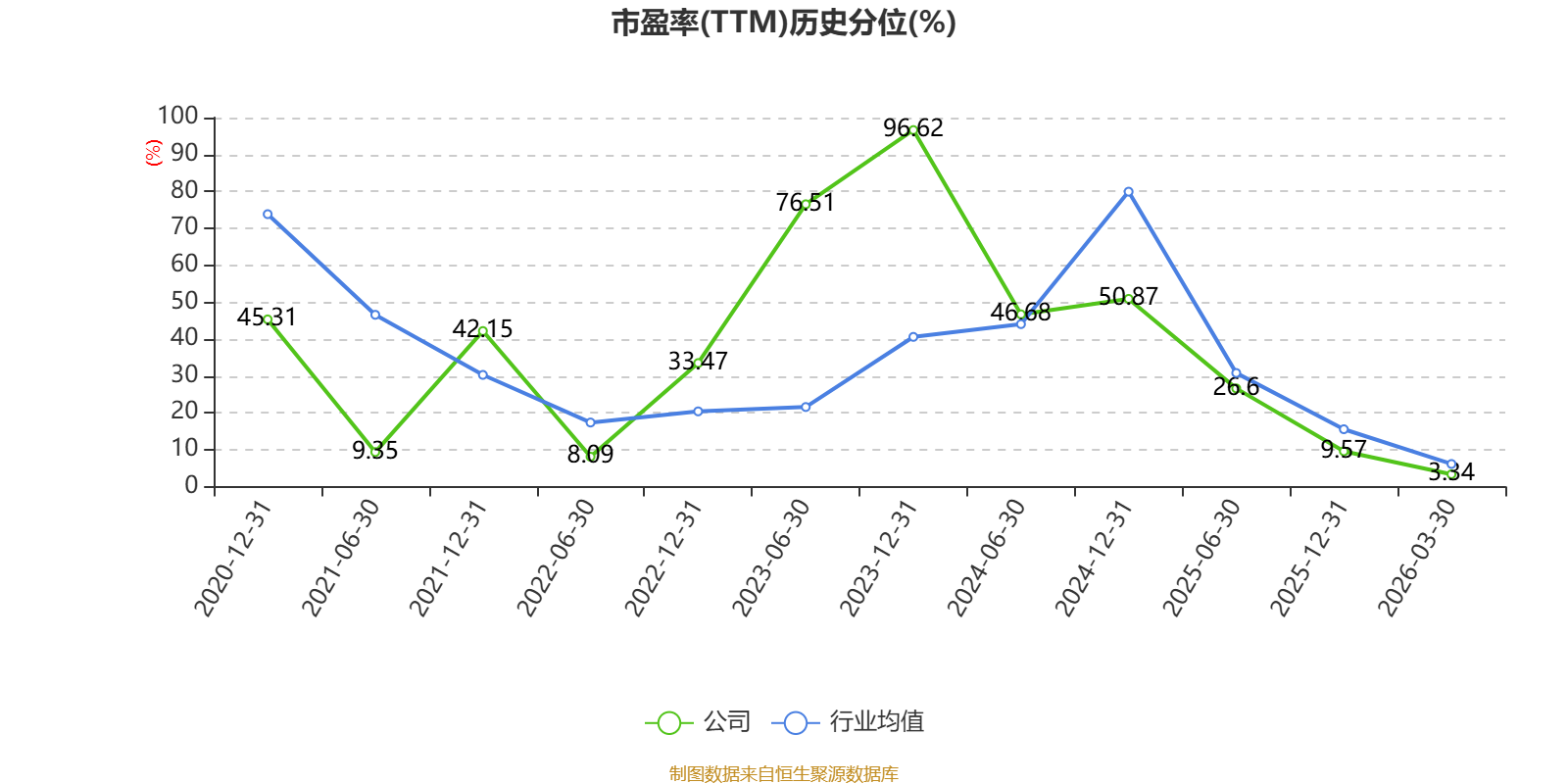 市盈率、市净率为负时,不显示当期分位数,会导致折线图中断。