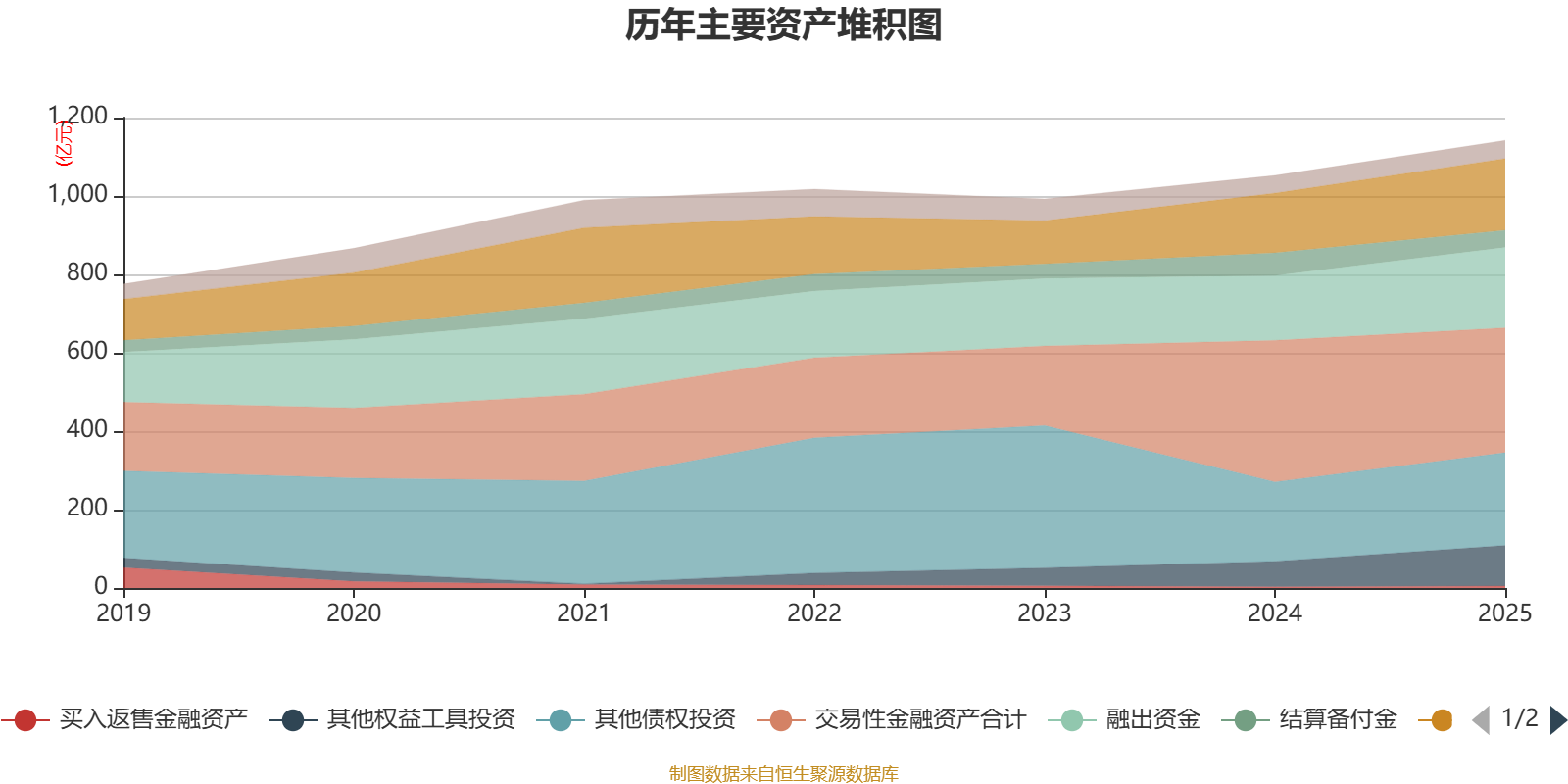 资产重大变化方面,截至2025年末,公司交易性金融资产合计较上年末减少11.83%,占公司总资产比重下降6.43个百分点;其他权益工具投资较上年末增加58.87%,占公司总资产比重上升2.87个百分点;融出资金较上年末增加24.01%,占公司总资产比重上升2.24个百分点;结算备付金较上年末减少24.13%,占公司总资产比重下降1.66个百分点。