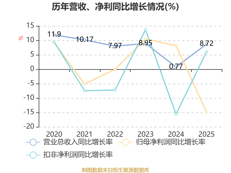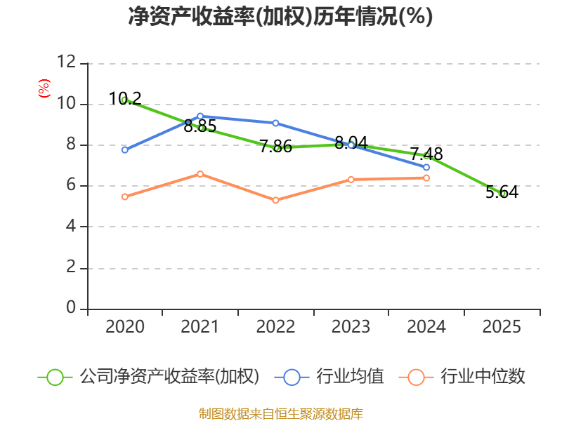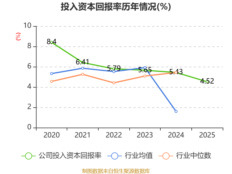 数据显示,2025年公司加权平均净资产收益率为5.64%,较上年同期下降1.84个百分点。公司2025年投入资本回报率为4.52%,较上年同期下降0.91个百分点。