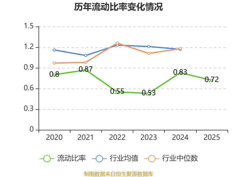 2025年,公司流动比率为0.72,速动比率为0.71。