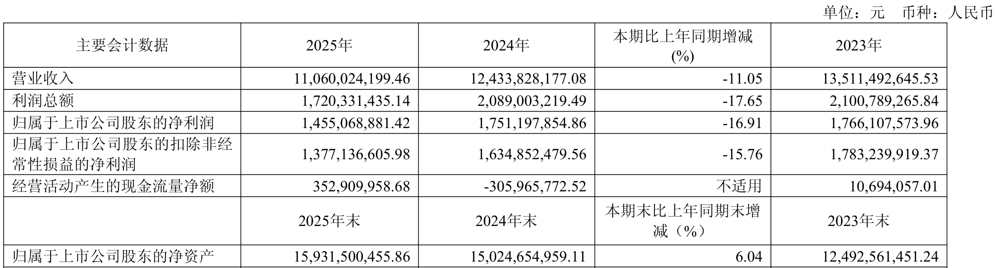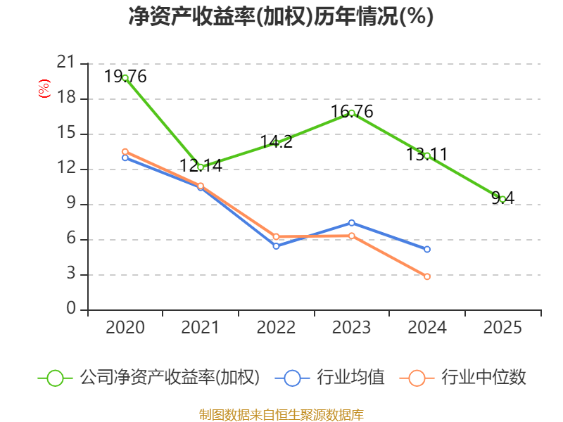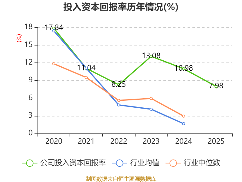 数据显示,2025年公司加权平均净资产收益率为9.4%,较上年同期下降3.71个百分点。公司2025年投入资本回报率为7.98%,较上年同期下降3个百分点。