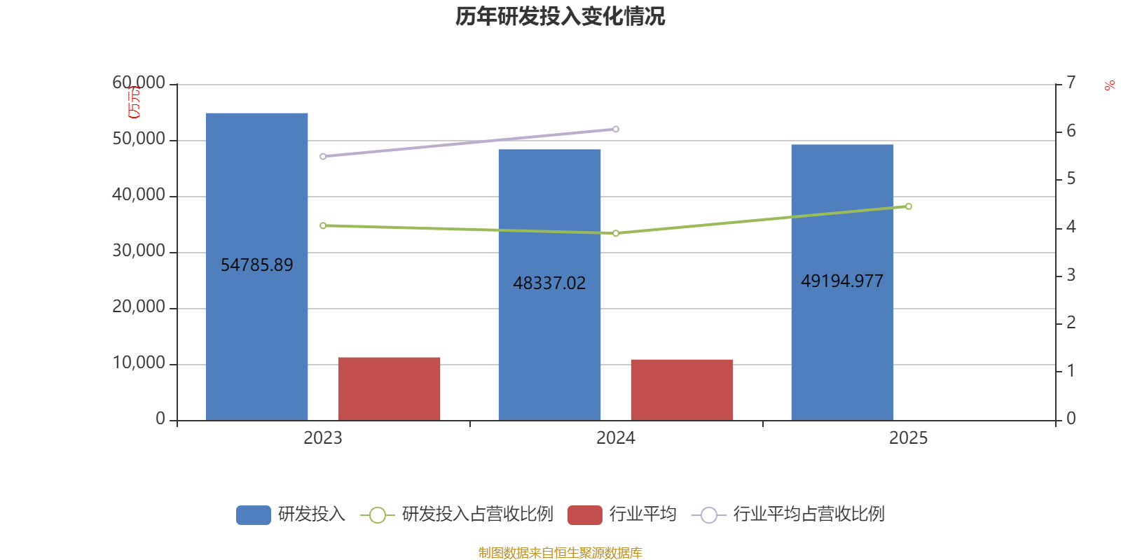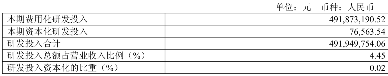 2025年全年,公司研发投入金额为4.92亿元,同比增长1.77%;研发投入占营业收入比例为4.45%,相比上年同期上升0.56个百分点。此外,公司全年研发投入资本化率为0.02%。