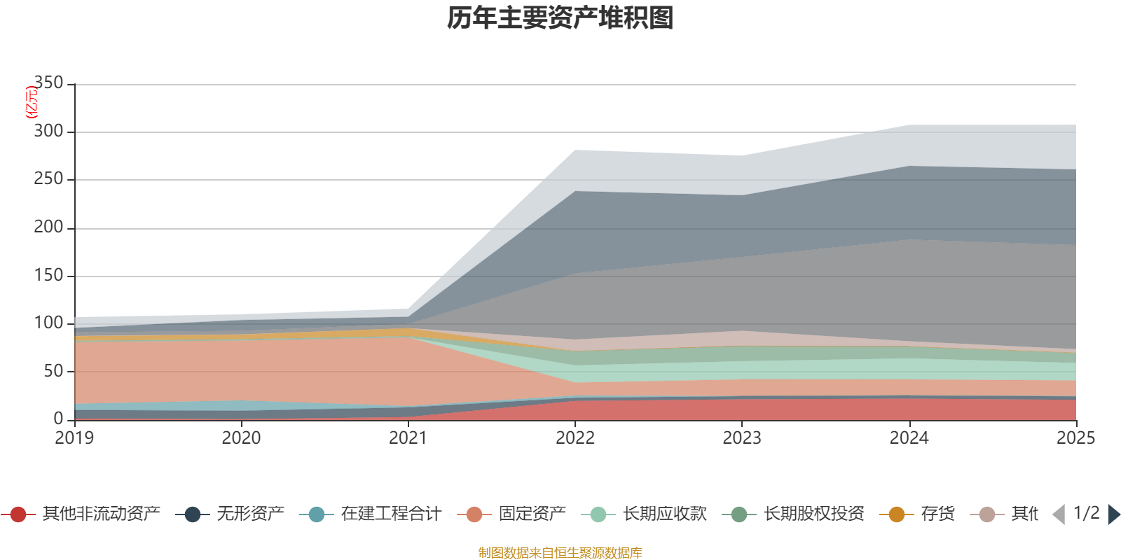 资产重大变化方面,截至2025年末,公司长期应收款较上年末减少16.94%,占公司总资产比重下降1.21个百分点;应收票据及应收账款较上年末增加2.26%,占公司总资产比重上升0.77个百分点;货币资金较上年末增加2.76%,占公司总资产比重上升0.68个百分点;合同资产较上年末增加17.23%,占公司总资产比重上升0.64个百分点。