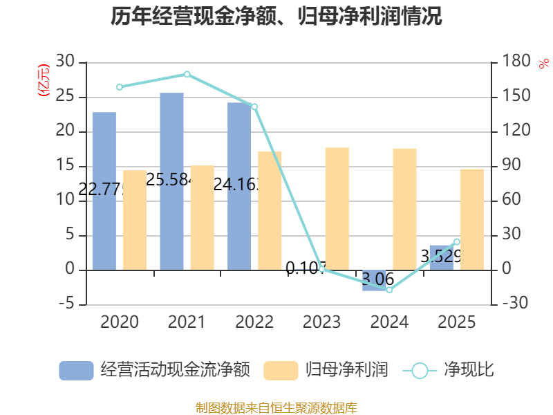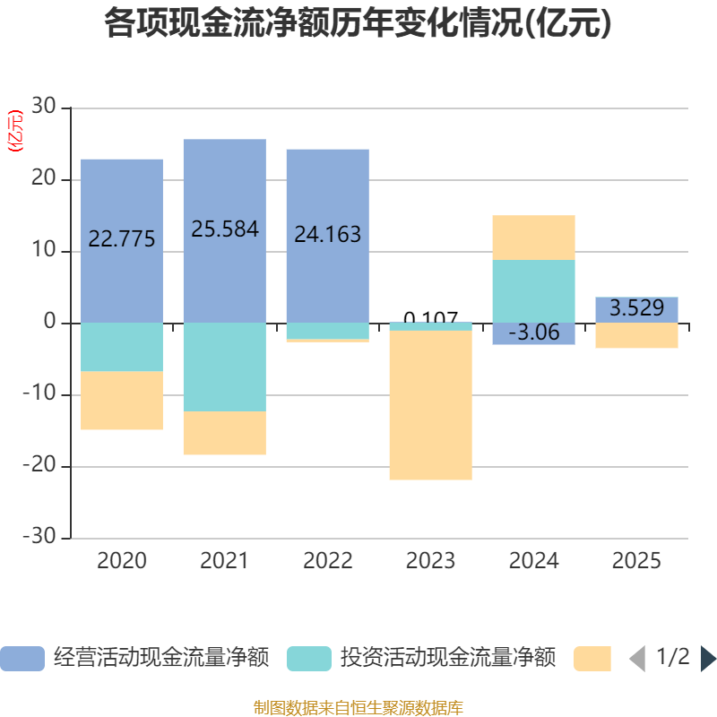截至2025年,公司经营活动现金流净额为3.53亿元,同比增加6.59亿元;筹资活动现金流净额-3.54亿元,同比减少9.77亿元;投资活动现金流净额639.05万元,上年同期为8.75亿元。
