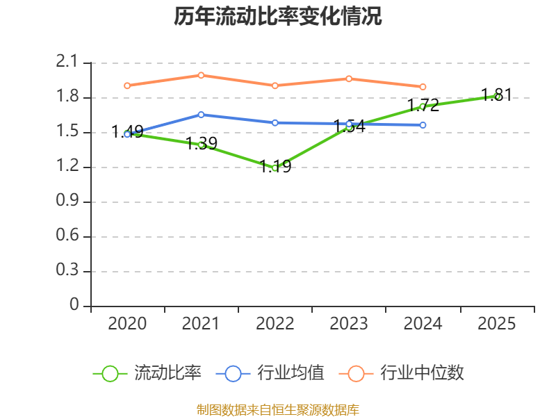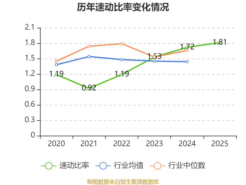 2025年,公司流动比率为1.81,速动比率为1.81。