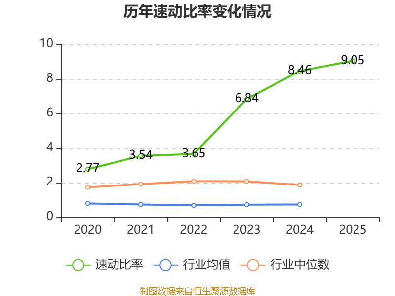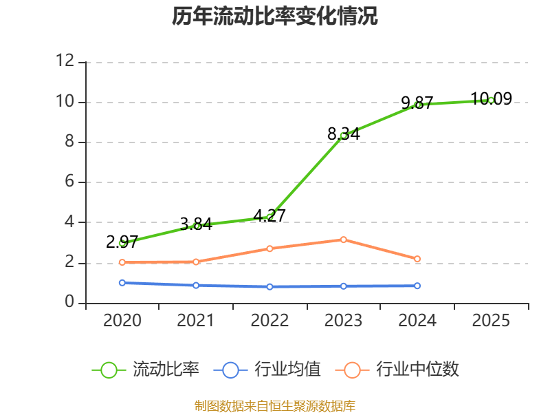 2025年,公司流动比率为10.09,速动比率为9.05。