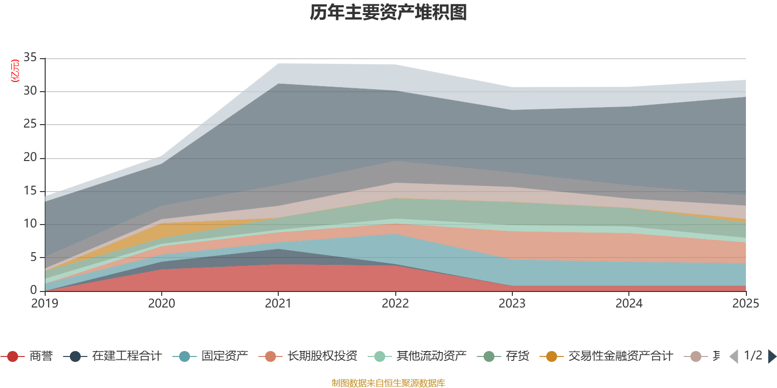 资产重大变化方面,截至2025年末,公司货币资金较上年末增加24.92%,占公司总资产比重上升8.01个百分点;长期股权投资较上年末减少27.87%,占公司总资产比重下降4.28个百分点;存货较上年末减少17.42%,占公司总资产比重下降1.82个百分点;交易性金融资产合计较上年末增加3828.42%,占公司总资产比重上升1.74个百分点。