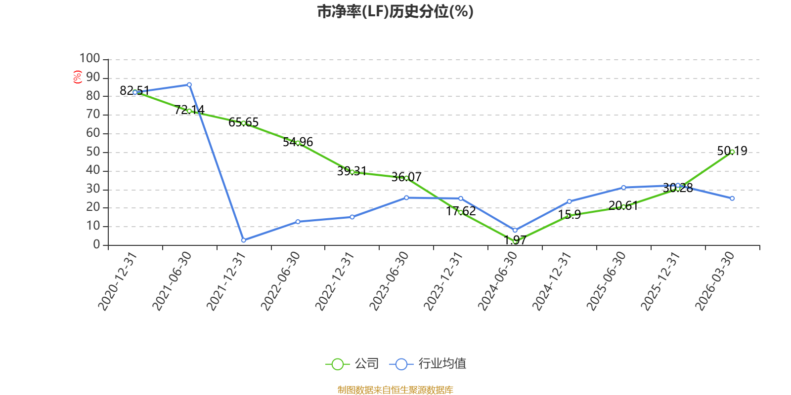 市盈率、市净率为负时,不显示当期分位数,会导致折线图中断。