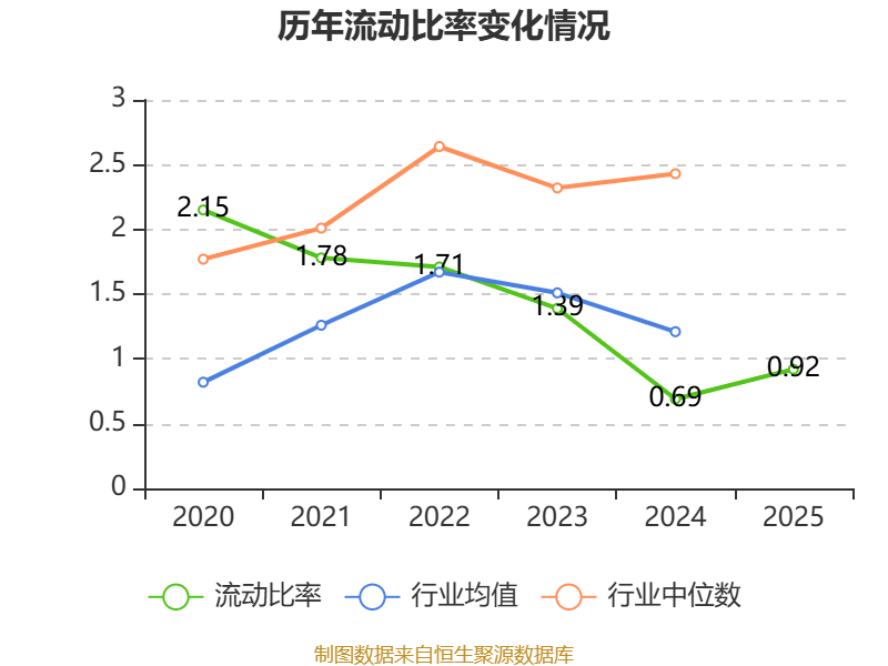 2025年,公司流动比率为0.92,速动比率为0.58。