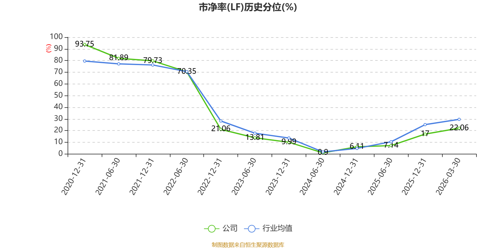 市盈率、市净率为负时,不显示当期分位数,会导致折线图中断。