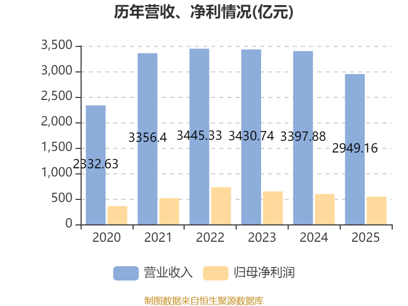 中证智能财讯中国神华(01088)3月30日披露2025年度报告。报告期内,公司实现营业收入2949.16亿元,同比下降13.21%;归母净利润542.18亿元,同比下降8.94%;经营活动产生的现金流量净额为750.59亿元,同比下降17.6%;据报告显示,中国神华基本每股收益为2.729元。