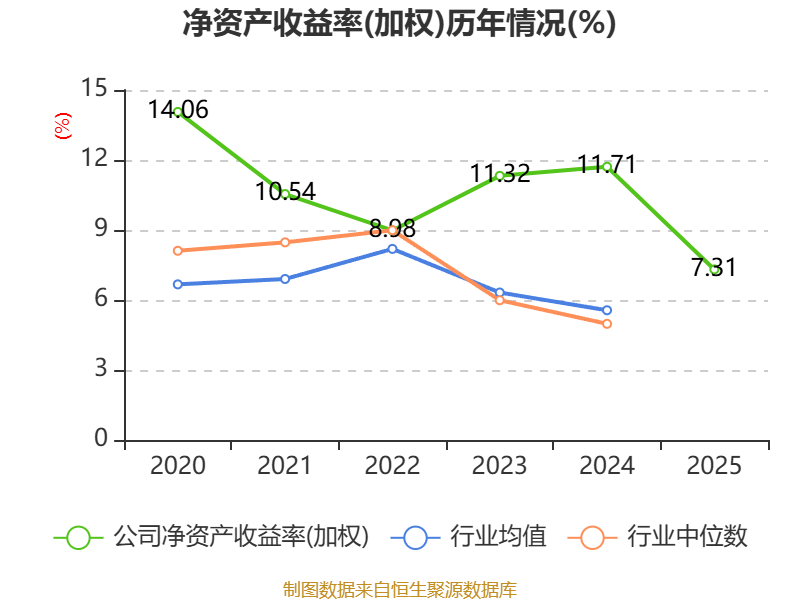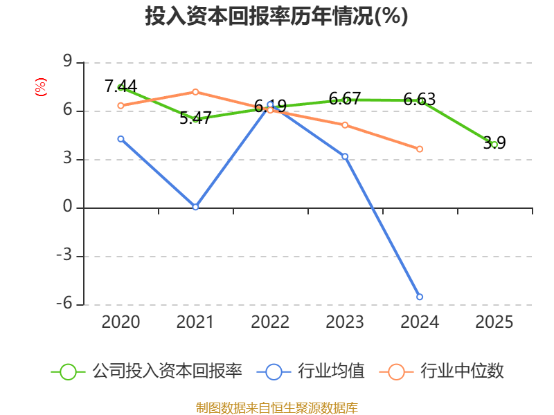 数据显示,2025年公司加权平均净资产收益率为7.31%,较上年同期下降4.4个百分点。公司2025年投入资本回报率为3.9%,较上年同期下降2.73个百分点。