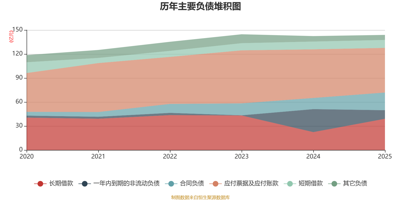 负债重大变化方面,截至2025年末,公司一年内到期的非流动负债较上年末减少62.91%,占公司总资产比重下降7.66个百分点;长期借款较上年末增加74.55%,占公司总资产比重上升5.78个百分点;应付票据及应付账款较上年末减少8.3%,占公司总资产比重下降3.55个百分点;合同负债较上年末增加58.53%,占公司总资产比重上升2.75个百分点。
