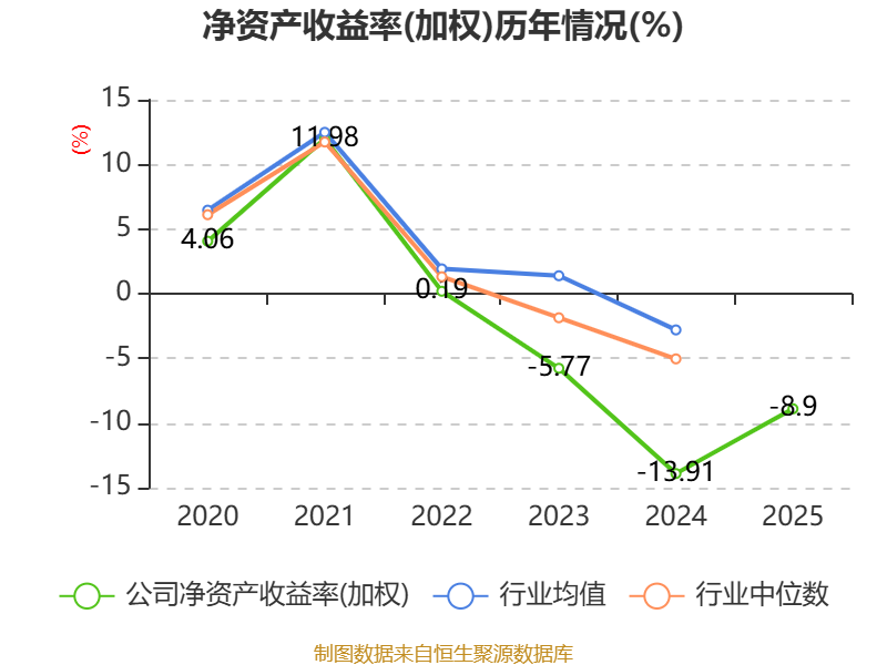 数据显示,2025年公司加权平均净资产收益率为-8.9%,较上年同期上升5.01个百分点。公司2025年投入资本回报率为-5.94%,较上年同期上升5.02个百分点。