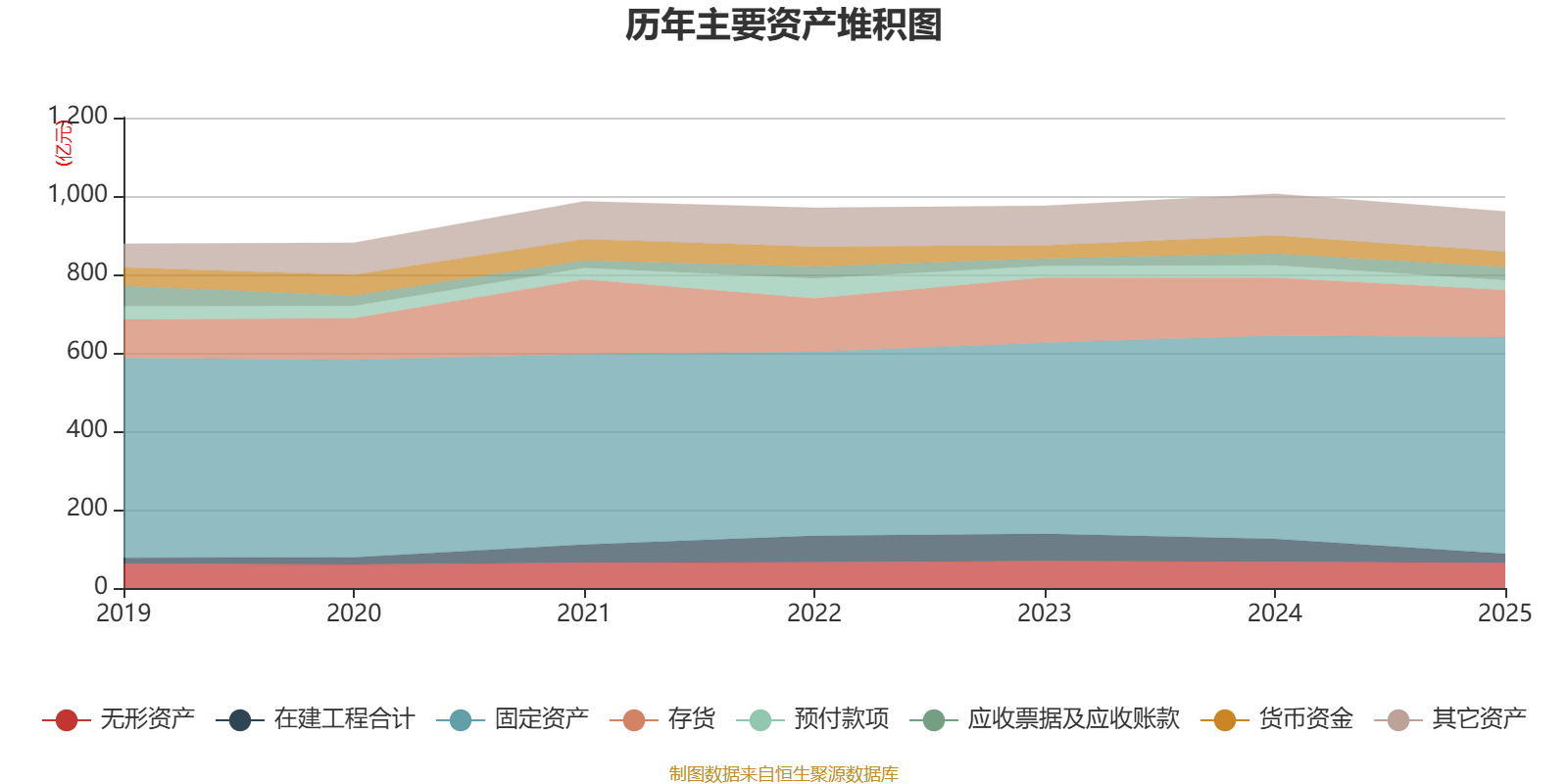 资产重大变化方面,截至2025年末,公司固定资产较上年末增加6.62%,占公司总资产比重上升6个百分点;在建工程合计较上年末减少59.1%,占公司总资产比重下降3.3个百分点;存货较上年末减少18.8%,占公司总资产比重下降2.2个百分点;其他非流动资产较上年末减少72.2%,占公司总资产比重下降0.65个百分点。