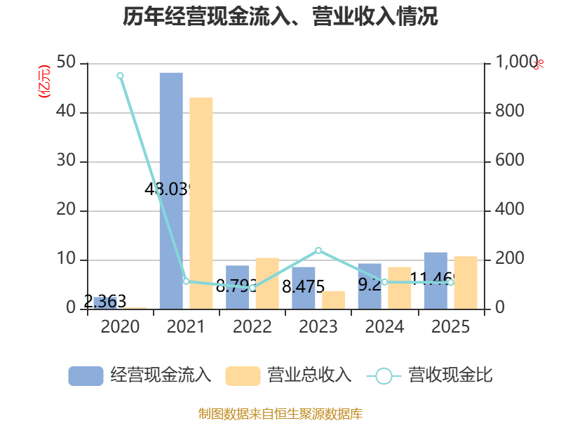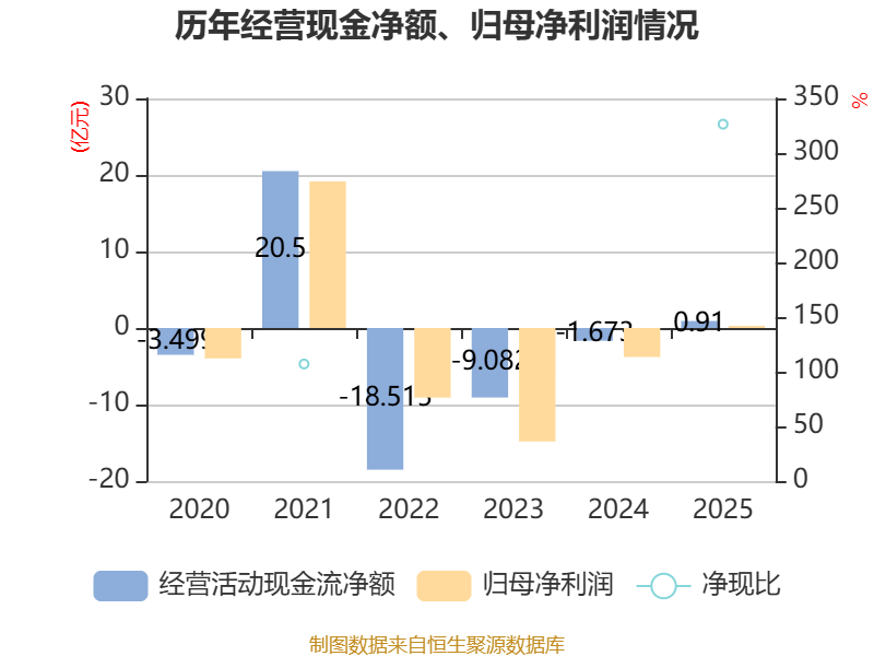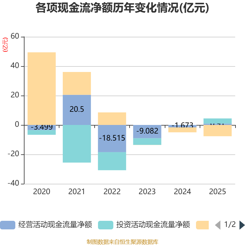 截至2025年,公司经营活动现金流净额为9098.24万元,同比增加2.58亿元;筹资活动现金流净额-7.67亿元,同比减少4.33亿元;投资活动现金流净额3.52亿元,上年同期为246.22万元。