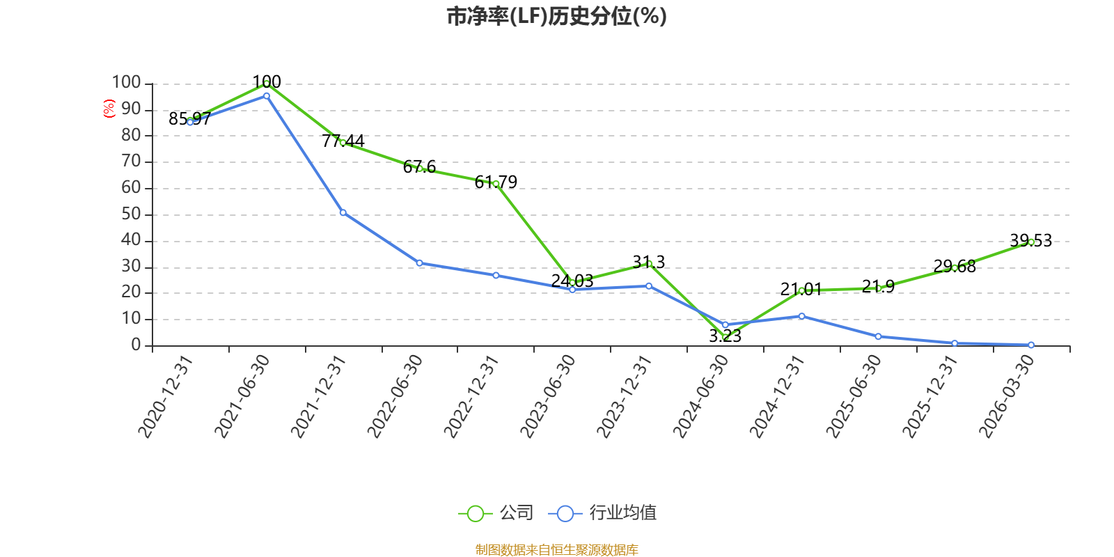 市盈率、市净率为负时,不显示当期分位数,会导致折线图中断。