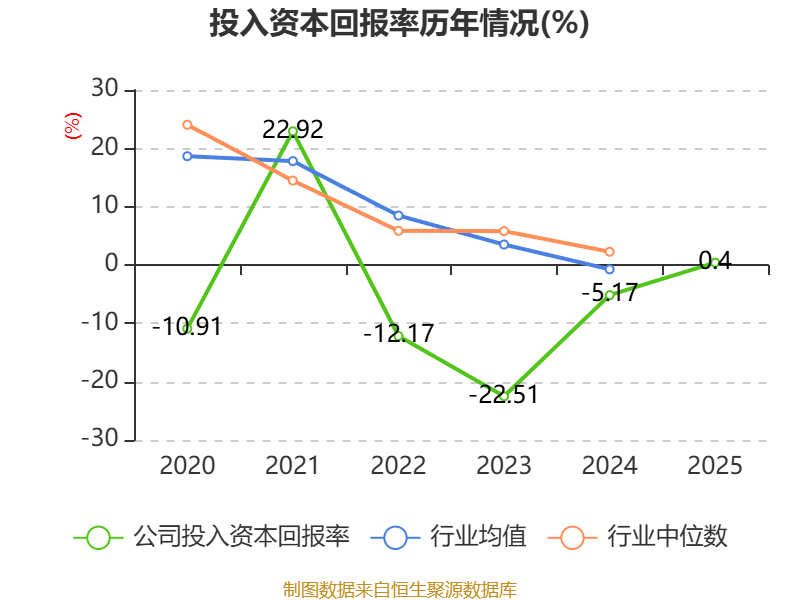 数据显示,2025年公司加权平均净资产收益率为0.57%,较上年同期上升8.01个百分点。公司2025年投入资本回报率为0.4%,较上年同期上升5.57个百分点。