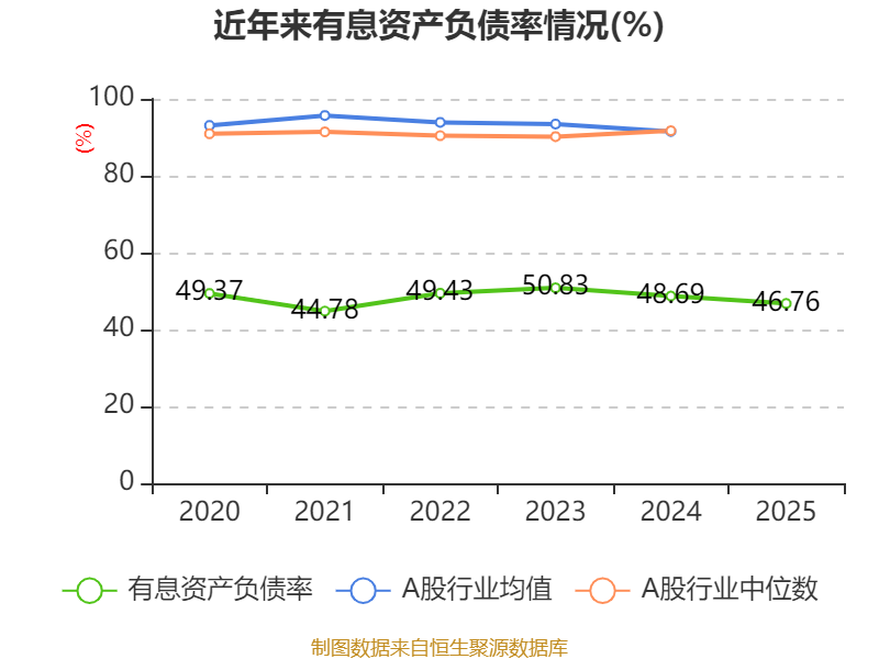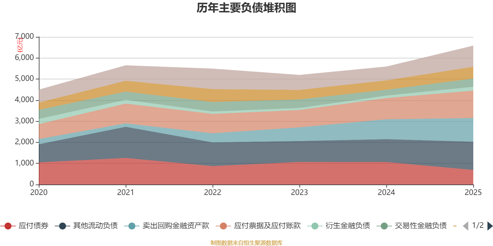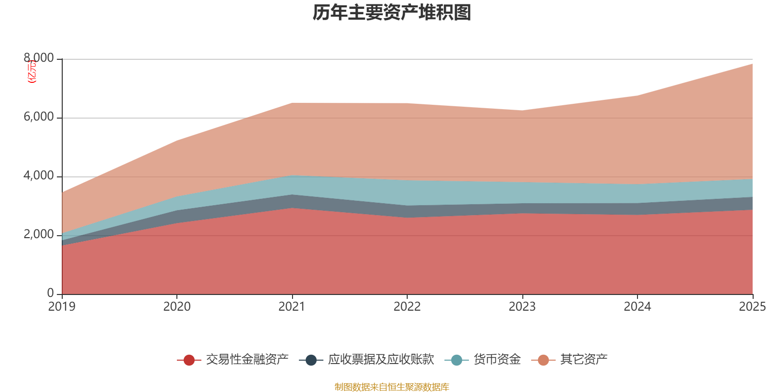 资产重大变化方面,截至2025年末,公司交易性金融资产较上期末增加6.48%,占公司总资产比重下降3.27个百分点;货币资金较上期末减少5.53%,占公司总资产比重下降1.78个百分点;衍生金融资产较上期末减少22.76%,占公司总资产比重下降0.82个百分点;其他权益工具投资较上期末增加52.79%,占公司总资产比重上升0.37个百分点。