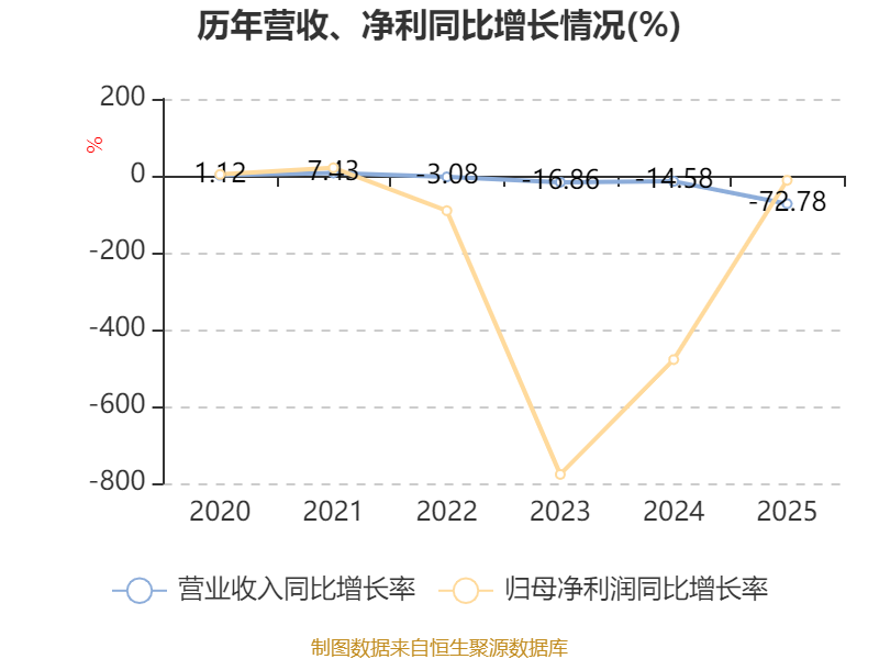 中证智能财讯晨鸣纸业(01812)3月30日披露2025年度报告。报告期内,公司实现营业收入61.87亿元,同比下降72.78%;归母净利润亏损82.96亿元,上年同期亏损74.11亿元;经营活动产生的现金流量净额为2.43亿元,同比下降90.73%;据报告显示,晨鸣纸业基本每股收益为-2.83元。