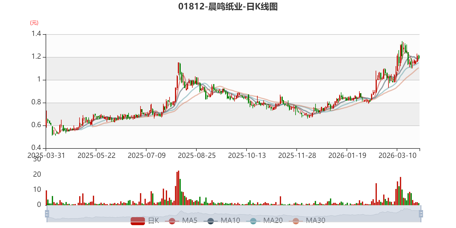 以3月30日收盘价计算,晨鸣纸业目前市净率(TTM)约3.5倍,市销率(TTM)约0.51倍。