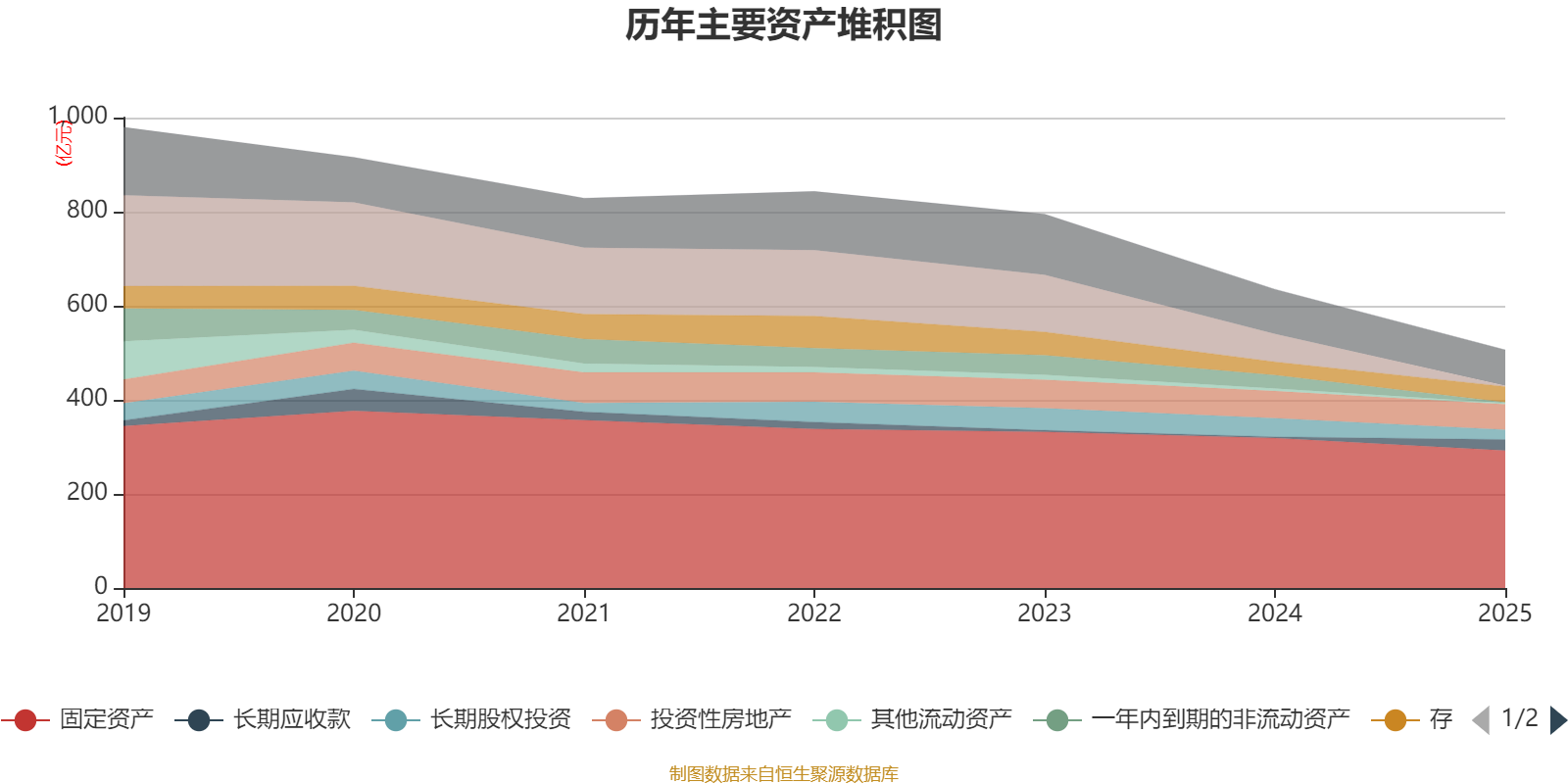 资产重大变化方面,截至2025年末,公司货币资金较上期末减少96.44%,占公司总资产比重下降8.89个百分点;固定资产较上期末减少8.27%,占公司总资产比重上升7.57个百分点;长期应收款较上期末增加734.35%,占公司总资产比重上升4.18个百分点;一年内到期的非流动资产较上期末减少93.16%,占公司总资产比重下降4.09个百分点。
