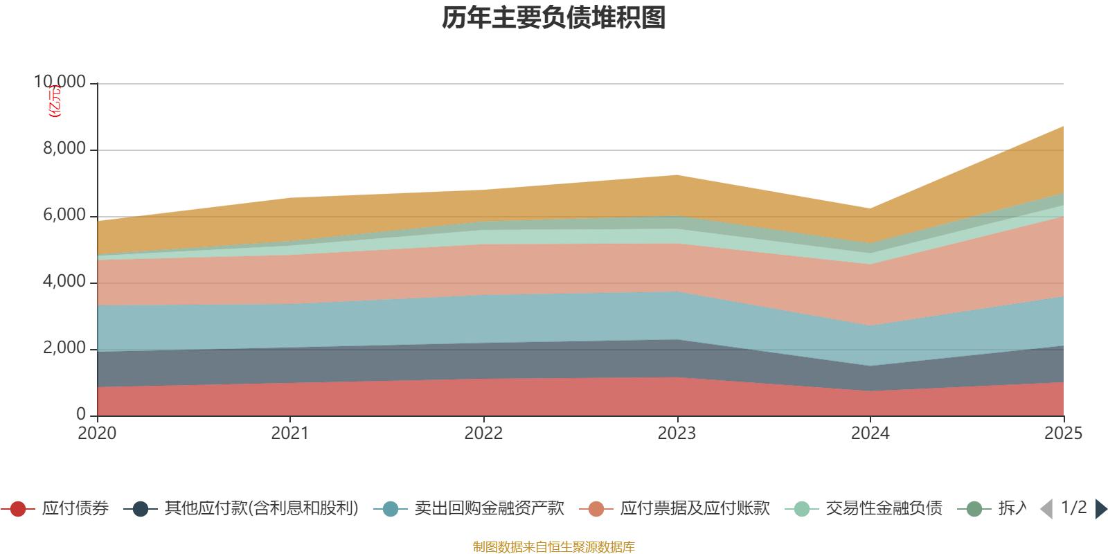 负债重大变化方面,截至2025年末,公司短期借款较上期末增加543.7%,占公司总资产比重上升1.6个百分点;卖出回购金融资产款较上期末增加22.39%,占公司总资产比重下降1.11个百分点;交易性金融负债较上期末减少0.31%,占公司总资产比重下降1.01个百分点;其他应付款(含利息和股利)较上期末增加45.71%,占公司总资产比重上升0.94个百分点。