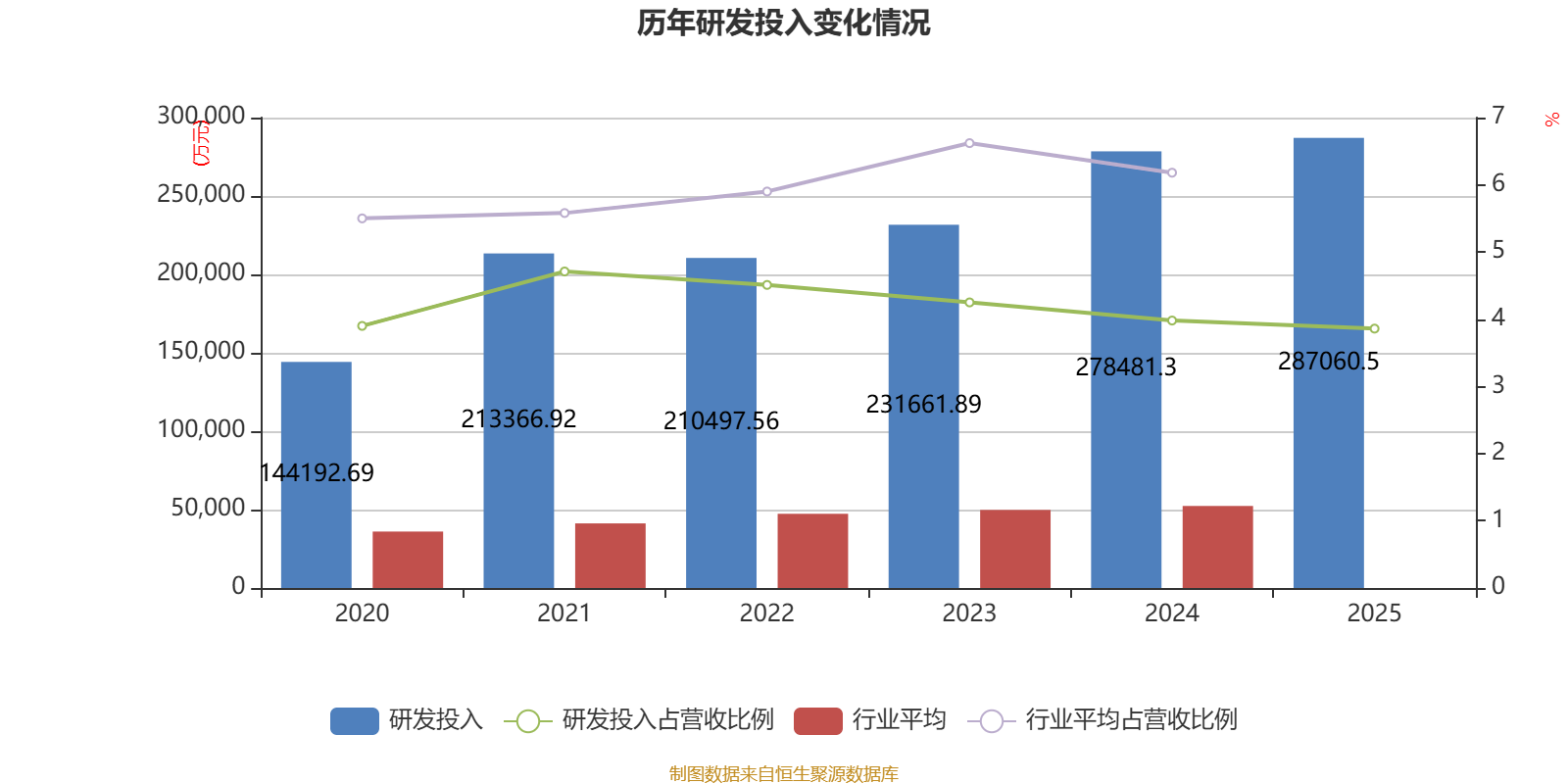 2025年全年,公司研发投入金额为28.71亿元,同比增长3.08%;研发投入占营业收入比例为3.86%,相比上年同期下降0.12个百分点。此外,公司全年研发投入资本化率为0%。
