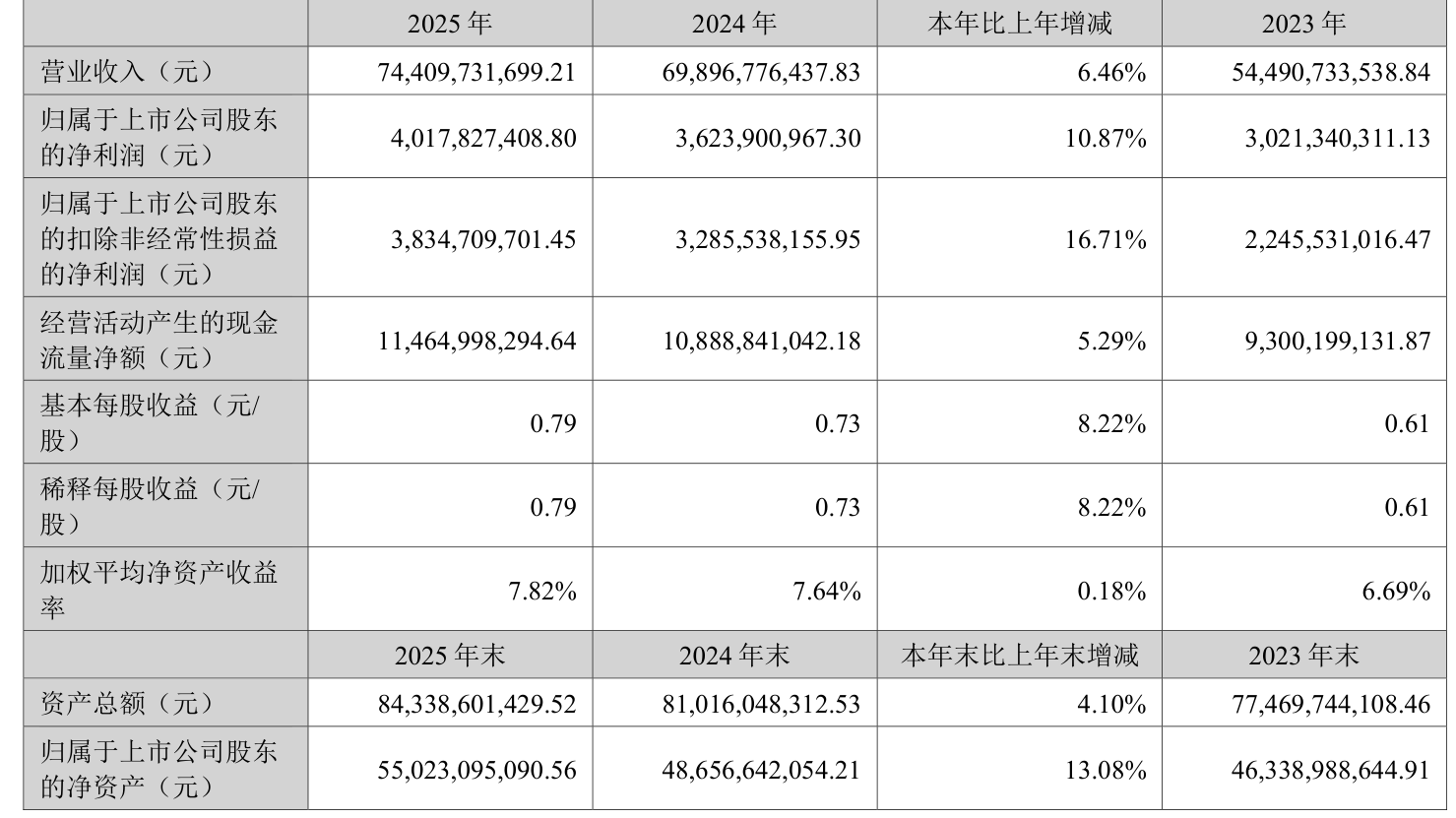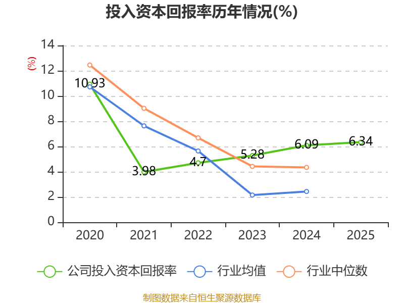 数据显示,2025年公司加权平均净资产收益率为7.82%,较上年同期上升0.18个百分点。公司2025年投入资本回报率为6.34%,较上年同期上升0.25个百分点。