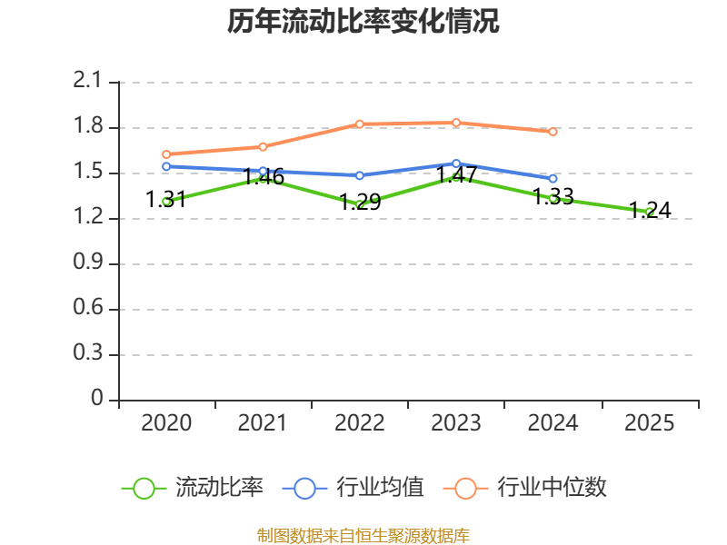 2025年,公司流动比率为1.24,速动比率为0.95。