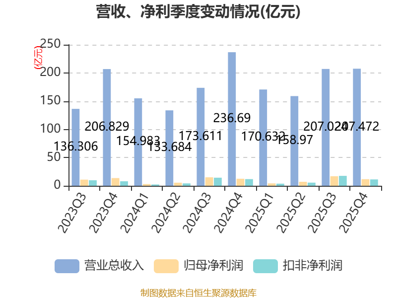 年报显示,2025年末的公司十大流通股东中,新进股东为易方达沪深300交易型开放式指数发起式证券投资基金、全国社保基金一零八组合,取代了三季度末的兴全合润混合型证券投资基金、兴全商业模式优选混合型证券投资基金(LOF)。在具体持股比例上,HKSCC NOMINEES LIMITED、香港中央结算有限公司、易方达创业板交易型开放式指数证券投资基金、华泰柏瑞沪深300交易型开放式指数证券投资基金、景顺长城品质长青混合型证券投资基金持股有所下降。