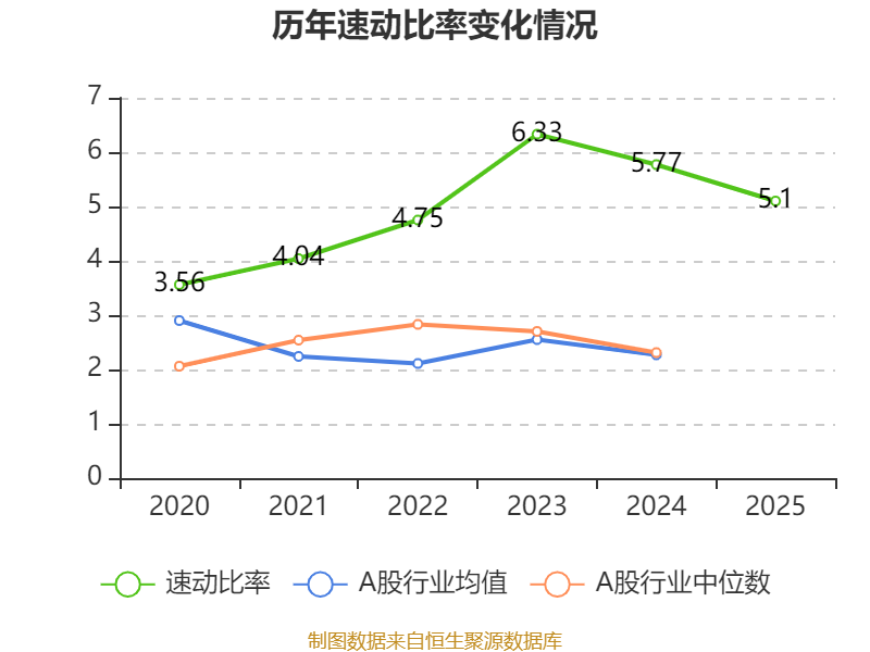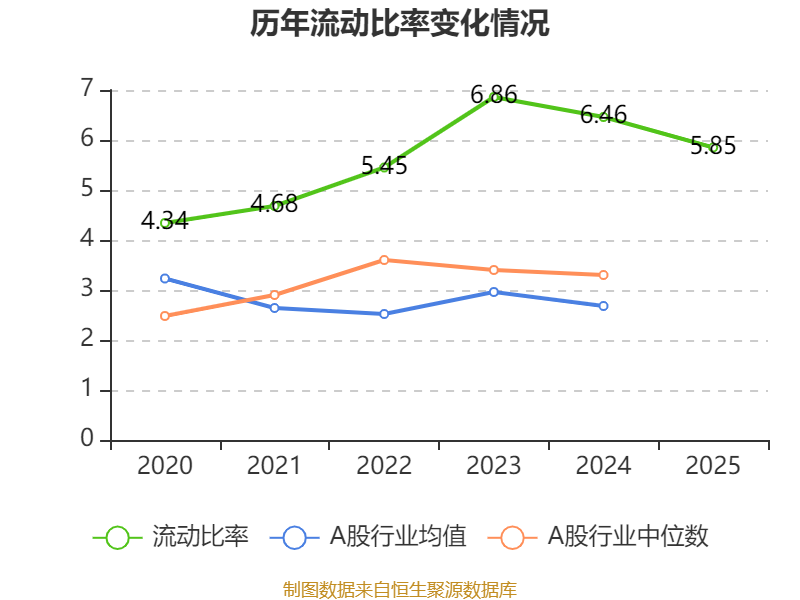 2025年,公司流动比率为5.85,速动比率为5.1。