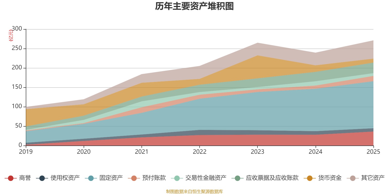 资产重大变化方面,截至2025年末,公司货币资金较上期末减少39.79%,占公司总资产比重下降3.31个百分点;交易性金融资产较上期末减少35.97%,占公司总资产比重下降2.03个百分点;商誉较上期末增加29.89%,占公司总资产比重上升1.7个百分点;预付账款较上期末增加68.43%,占公司总资产比重上升1.65个百分点。