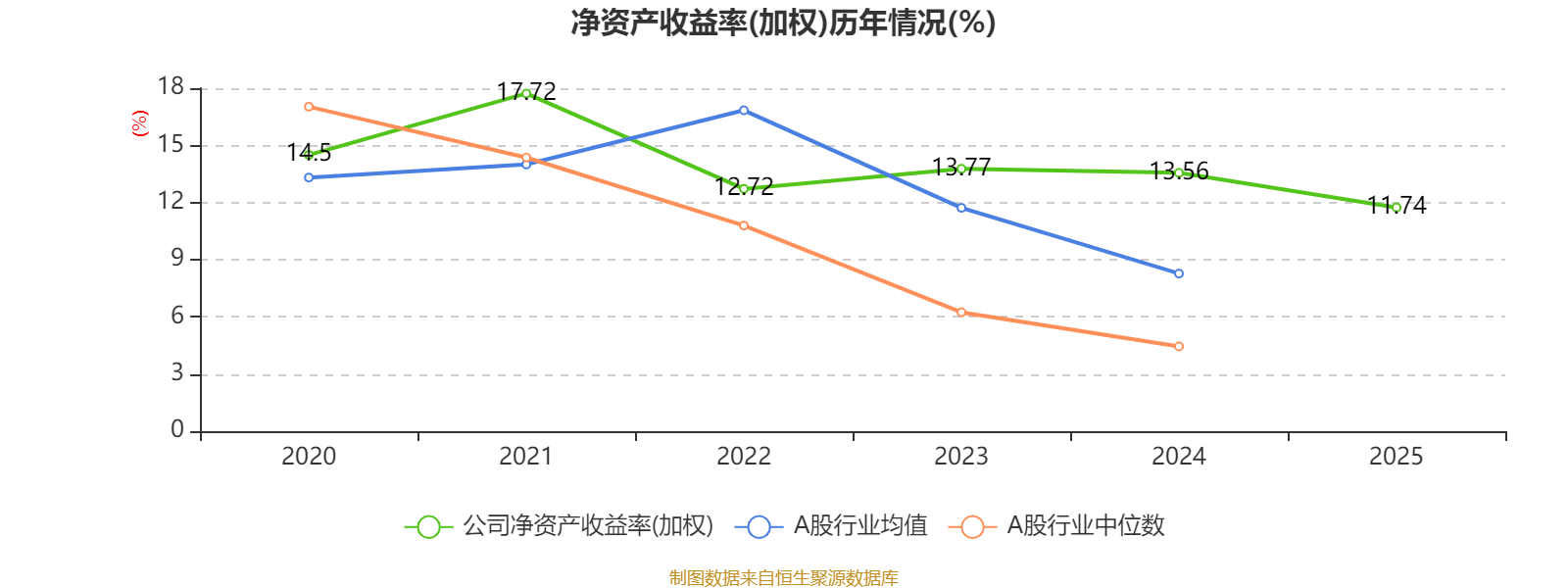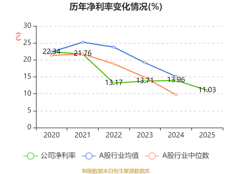 数据显示,2025年公司平均净资产收益率为11.74%,较上年同期下降1.82个百分点。