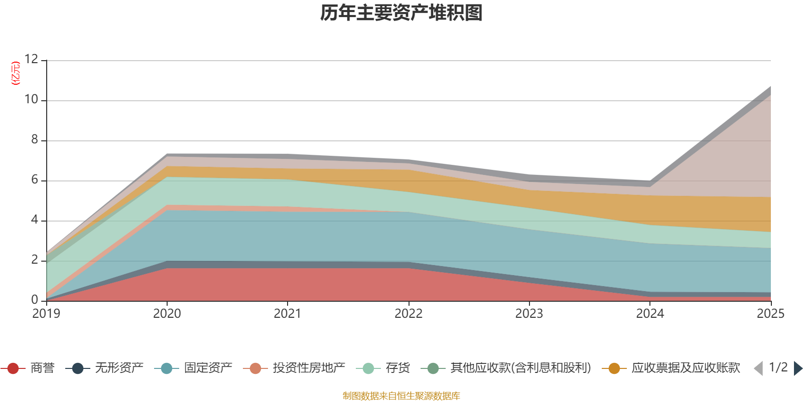 资产重大变化方面,截至2025年末,公司货币资金较上年末增加1111.51%,占公司总资产比重上升40.54个百分点;固定资产较上年末减少8.38%,占公司总资产比重下降19.6个百分点;应收票据及应收账款较上年末增加18.14%,占公司总资产比重下降8.33个百分点;存货较上年末减少12.61%,占公司总资产比重下降7.84个百分点。