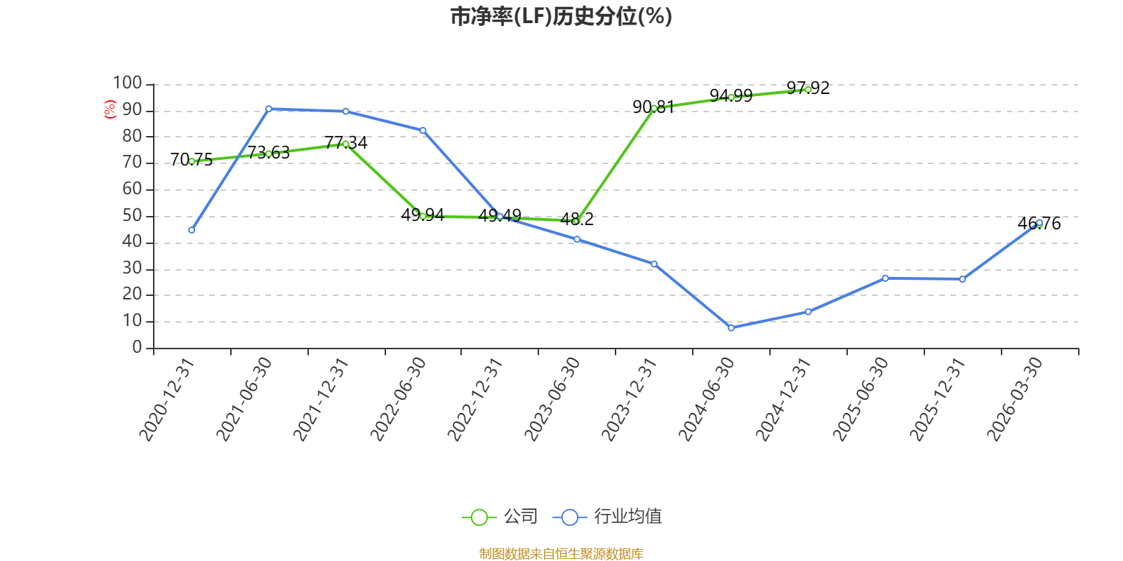 市盈率、市净率为负时,不显示当期分位数,会导致折线图中断。