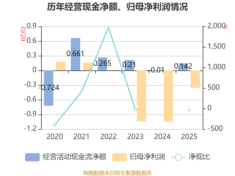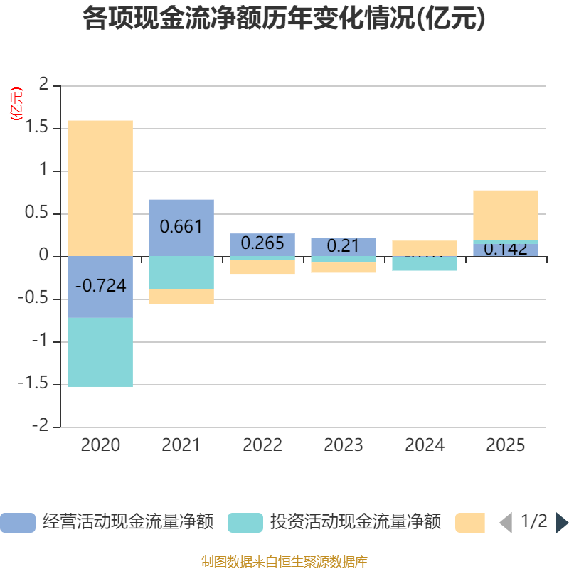 截至2025年,公司经营活动现金流净额为1415.22万元,同比增加1513.49万元;筹资活动现金流净额5775.23万元,同比增加3967.81万元;投资活动现金流净额489.55万元,上年同期为-1606.83万元。