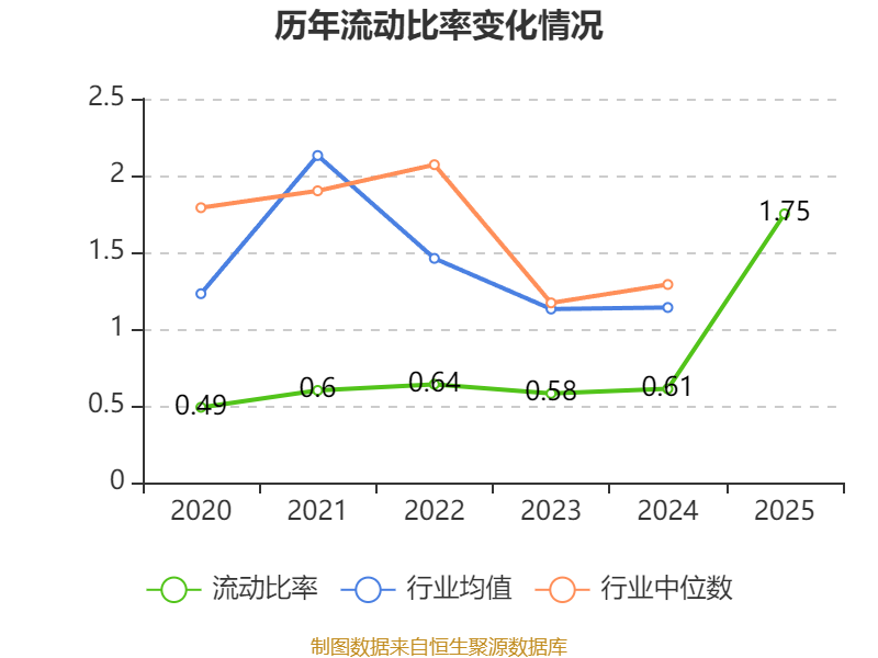 2025年,公司流动比率为1.75,速动比率为1.58。