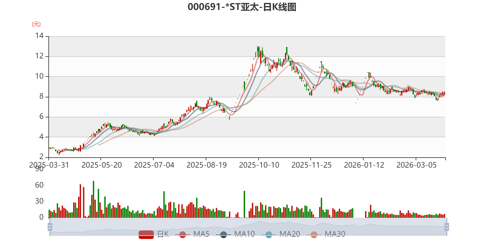 以3月30日收盘价计算,*ST亚太目前市盈率(TTM)约为-113.5倍,市净率(LF)约9.01倍,市销率(TTM)约7.8倍。