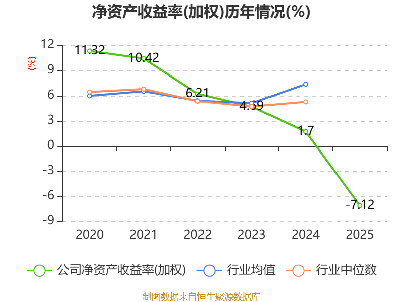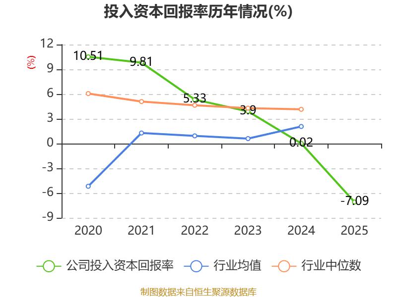 数据显示,2025年公司加权平均净资产收益率为-7.12%,较上年同期下降8.82个百分点。公司2025年投入资本回报率为-7.09%,较上年同期下降7.11个百分点。