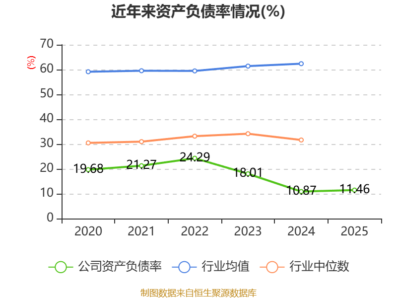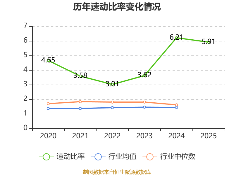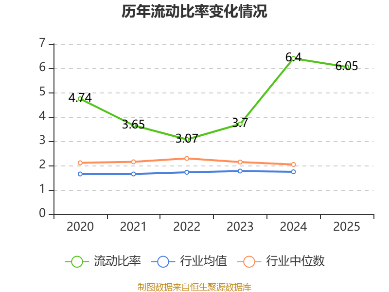 2025年,公司流动比率为6.05,速动比率为5.91。
