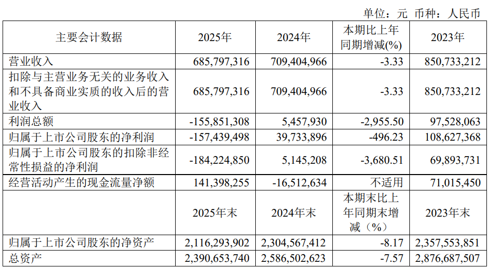 中证智能财讯复旦张江(688505)3月31日披露2025年年度报告。2025年,公司实现营业总收入6.86亿元,同比下降3.33%;归母净利润亏损1.57亿元,上年同期盈利3973.39万元;扣非净利润亏损1.84亿元,上年同期盈利514.52万元;经营活动产生的现金流量净额为1.41亿元,上年同期为-1651.26万元;报告期内,复旦张江基本每股收益为-0.15元,加权平均净资产收益率为-7.12%。