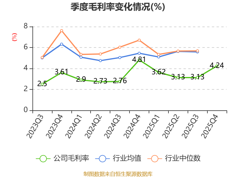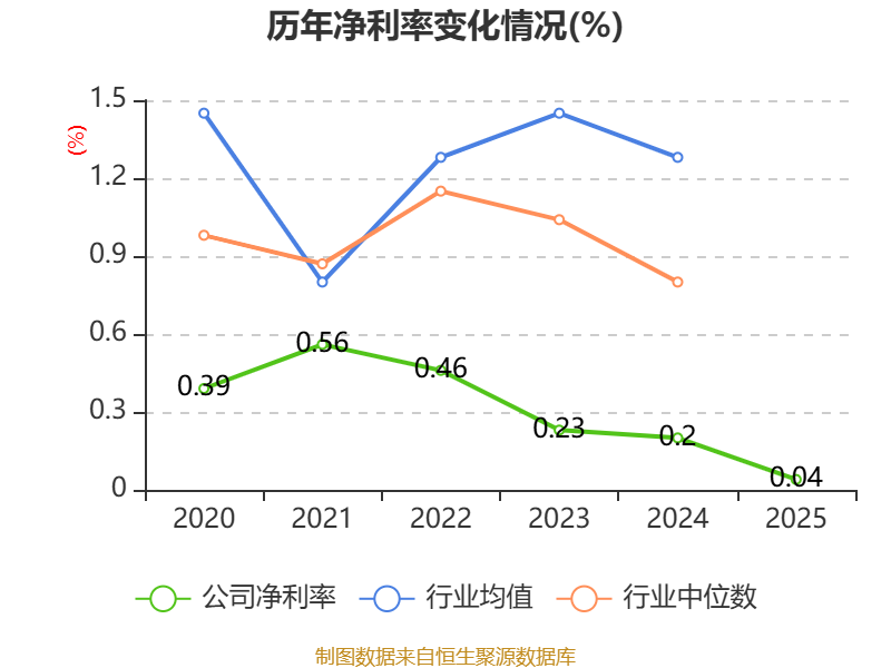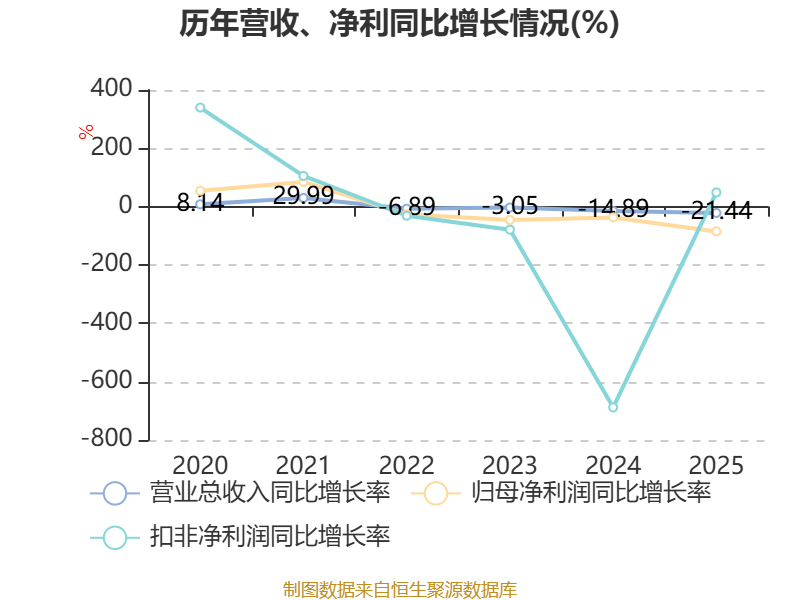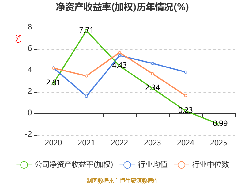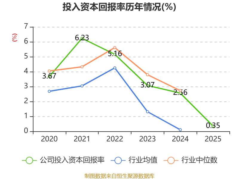 数据显示,2025年公司加权平均净资产收益率为-0.99%,较上年同期下降1.22个百分点。公司2025年投入资本回报率为0.35%,较上年同期下降2.21个百分点。