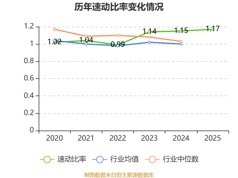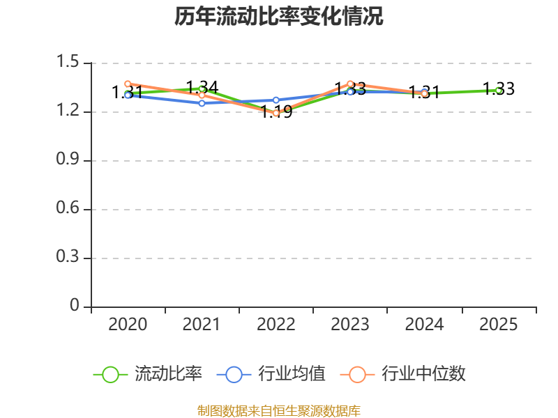 2025年,公司流动比率为1.33,速动比率为1.17。